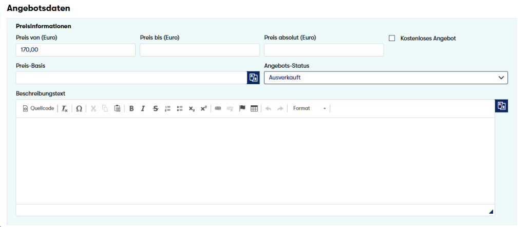 Bei Angeboten gibt es nun die Möglichkeit einen Angebotsstatus zu vergeben. Damit haben Sie bei besonders stark nachgefragten Angeboten die Möglichkeit anzuzeigen, wenn diese „Ausverkauft“ sind. Mithilfe des Status werden die Nachfragen der Nutzer*innen reduziert und das Angebot bleibt trotzdem sichtbar.