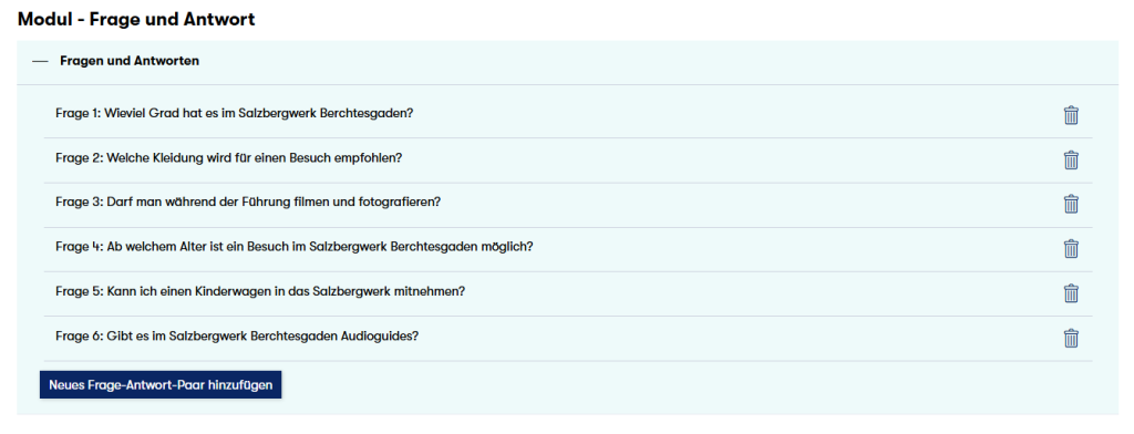 Mit dem Frage-Antwort Modul können die Inhalte einheitlich und strukturiert im Portal sowie über Schnittstellen ausgegeben werden.