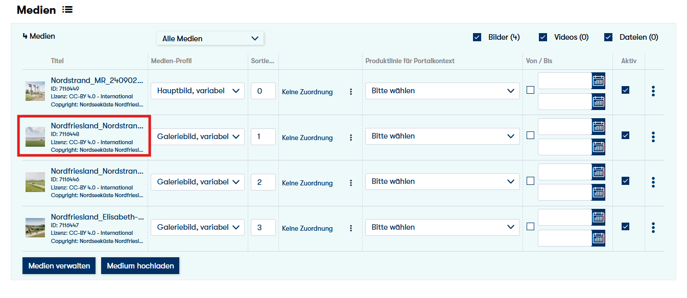 Die wichtige Bildinformation zur Medienlizenz wird nun sowohl in der Medienübersicht am Objekt als auch in der Medienverwaltung direkt in der Übersicht mit angezeigt, wenn eine Lizenz gepflegt ist.