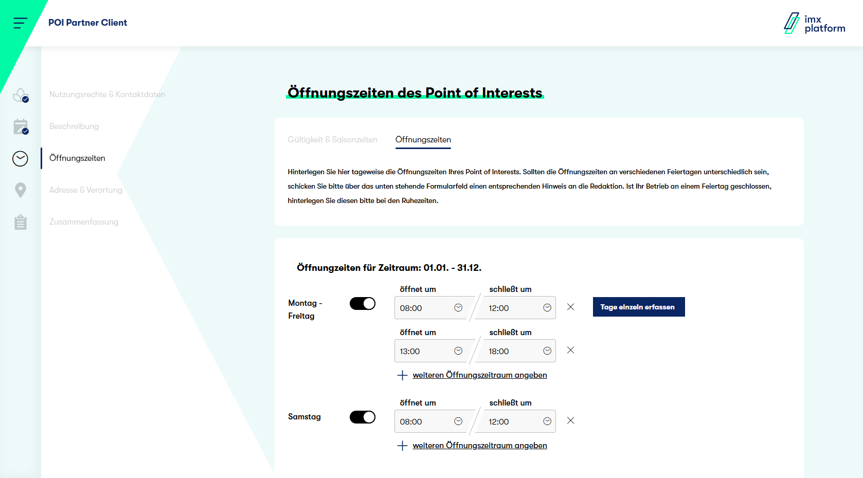 Über den POI-Partner Client können Leistungsträger, Veranstalter und sonstige Partner und Akteure die Daten ihres Betriebes pflegen, neue Stammdatensätze anlegen und bestehende Daten aktualisieren.