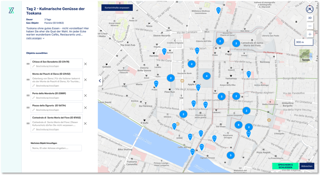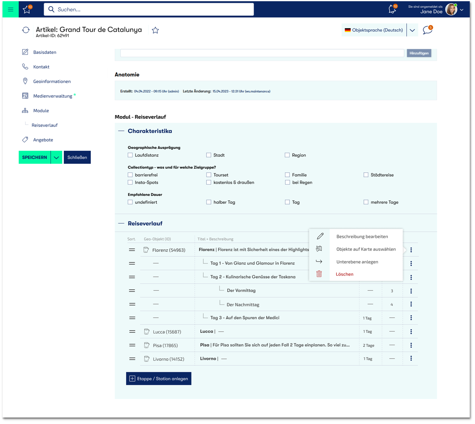 Das neue Modul „Reiseverlauf“ bietet redaktionelle Reisevorschläge auf Basis der Objektart „Artikel“. Dadurch können Artikel als redaktionelle Inhalte ohne klassisch strukturierte Stammdaten wie Adresse, Öffnungszeiten, etc. verwendet werden.