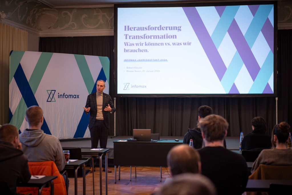 infomax-Geschäftsführer Robert Klauser eröffnet den ersten Tag unseres Jahresauftakts mit einem Rückblick auf das vergangene Jahr.