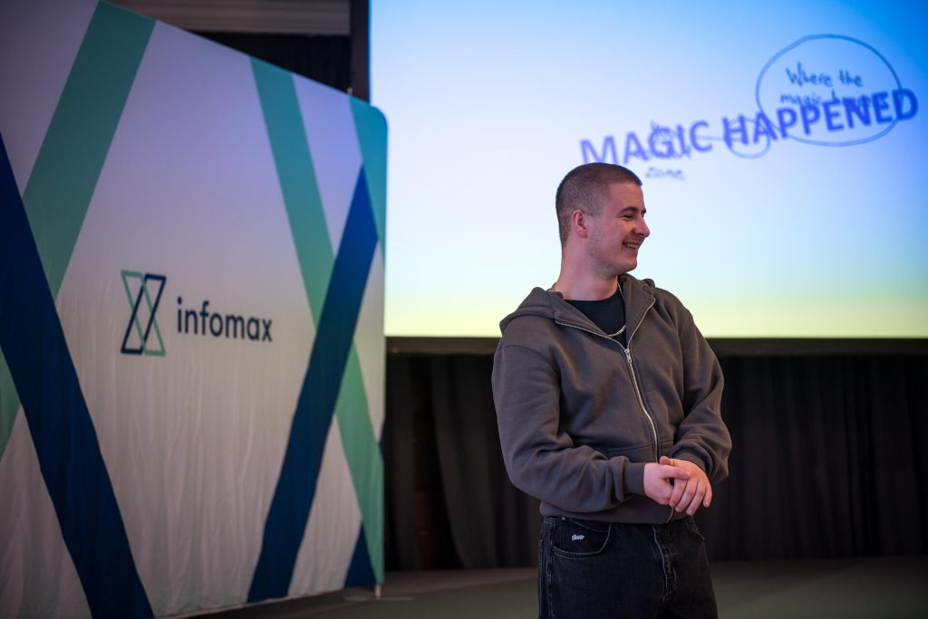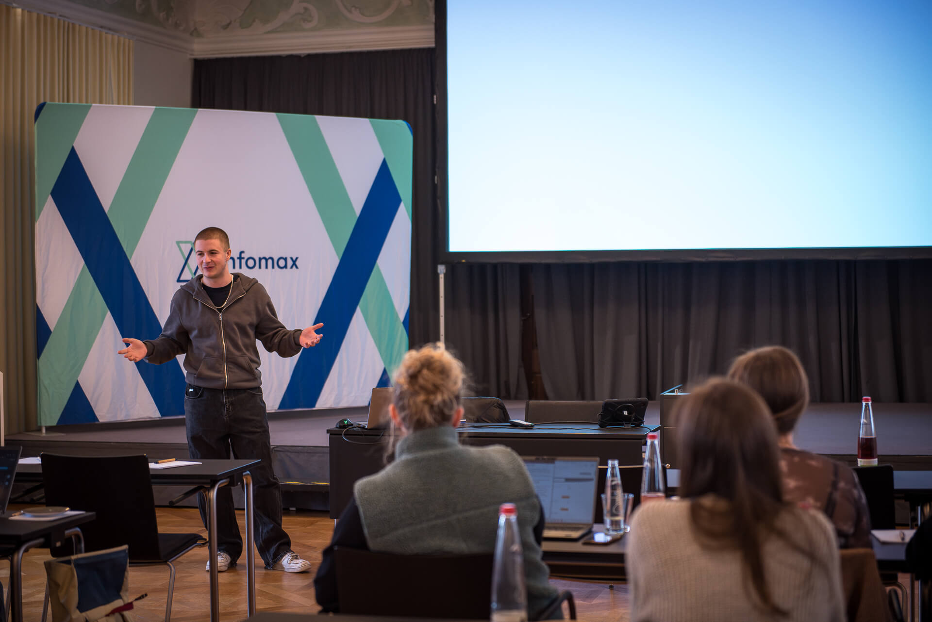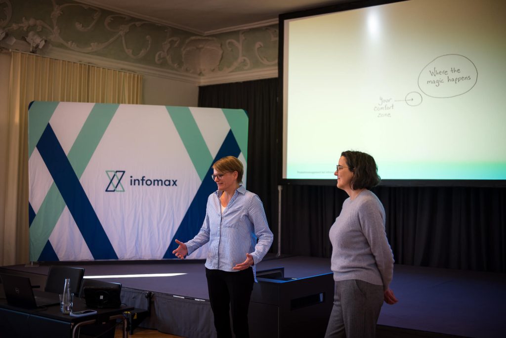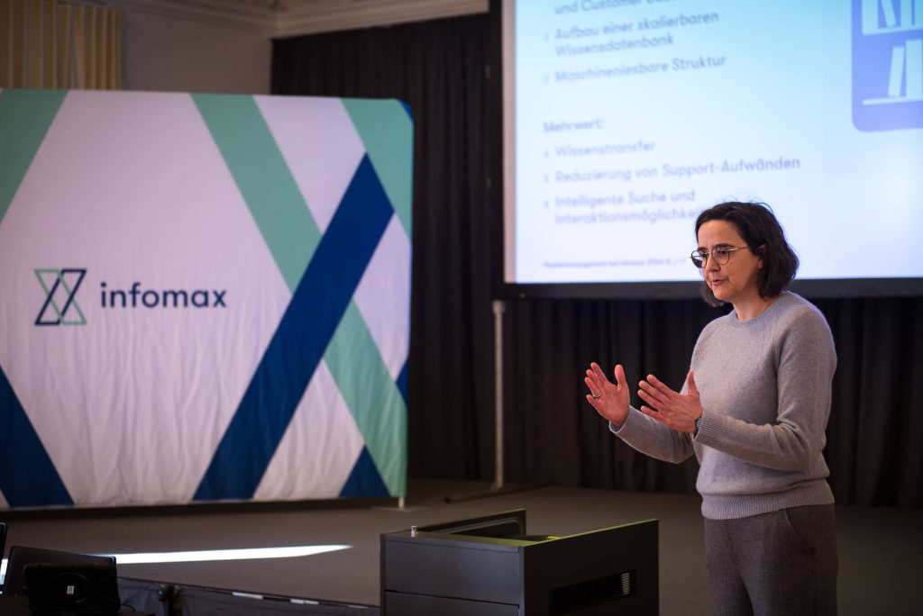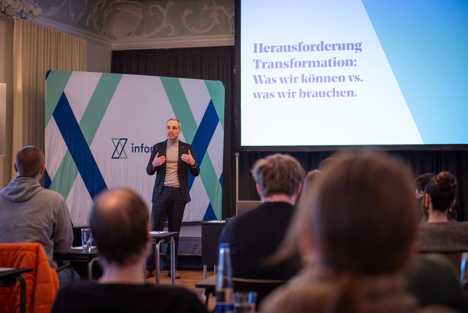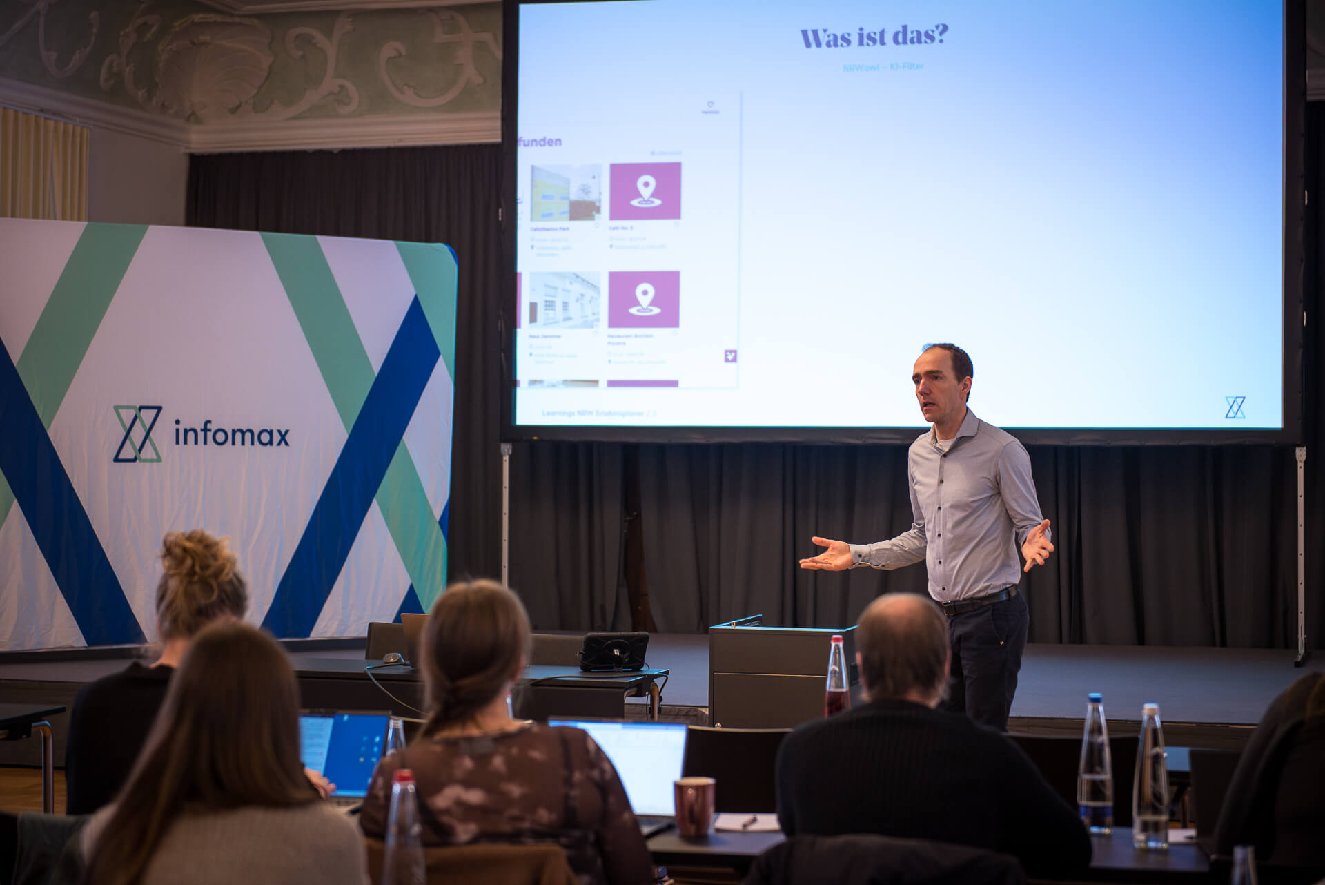 Auch die imx.Platform ist mit tollen neuen Funktionen ausgestattet und wurde über das vergangene Jahr kontinuierlich weiterentwickelt. Gleichzeitig betont Robert Klauser, dass der Erfolg von gestern das größte Risiko für morgen sein kann. Er appelliert daran, dass wir uns als infomax für die kommenden Erfolge neu aufstellen müssen – im Kleinen wie im Großen.