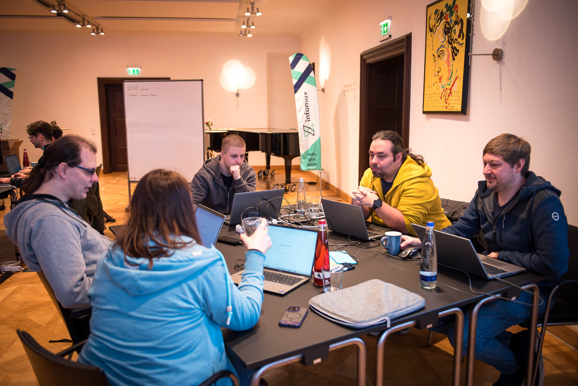 Dankbar für den vielseitigen Input, die tolle Location und viele wertvolle Gespräche schließen wir den Donnerstag mit einer Feedbackrunde ab. Danke an Michael Degener (UX-Designer) für sage und schreibe 25 Jahre bei infomax! Zum nachträglichen 10-jährigen Firmenjubiläum gratulieren wir Stefan Oswald (Web-Entwickler). Danke an die Geschäftsleitung, dass wir dieses Event Jahr für Jahr und in so einem tollen Rahmen haben. Danke an die zahlreichen Referent*innen für die bereichernden Sessions und den Hackathon. Danke an Julia Hingerl und Janine Kather für die tolle Organisation! Und last but not least: Danke an das Team vom Kloster Seeon, dass Ihr immer wieder jeden unserer Wünsche erfüllt!