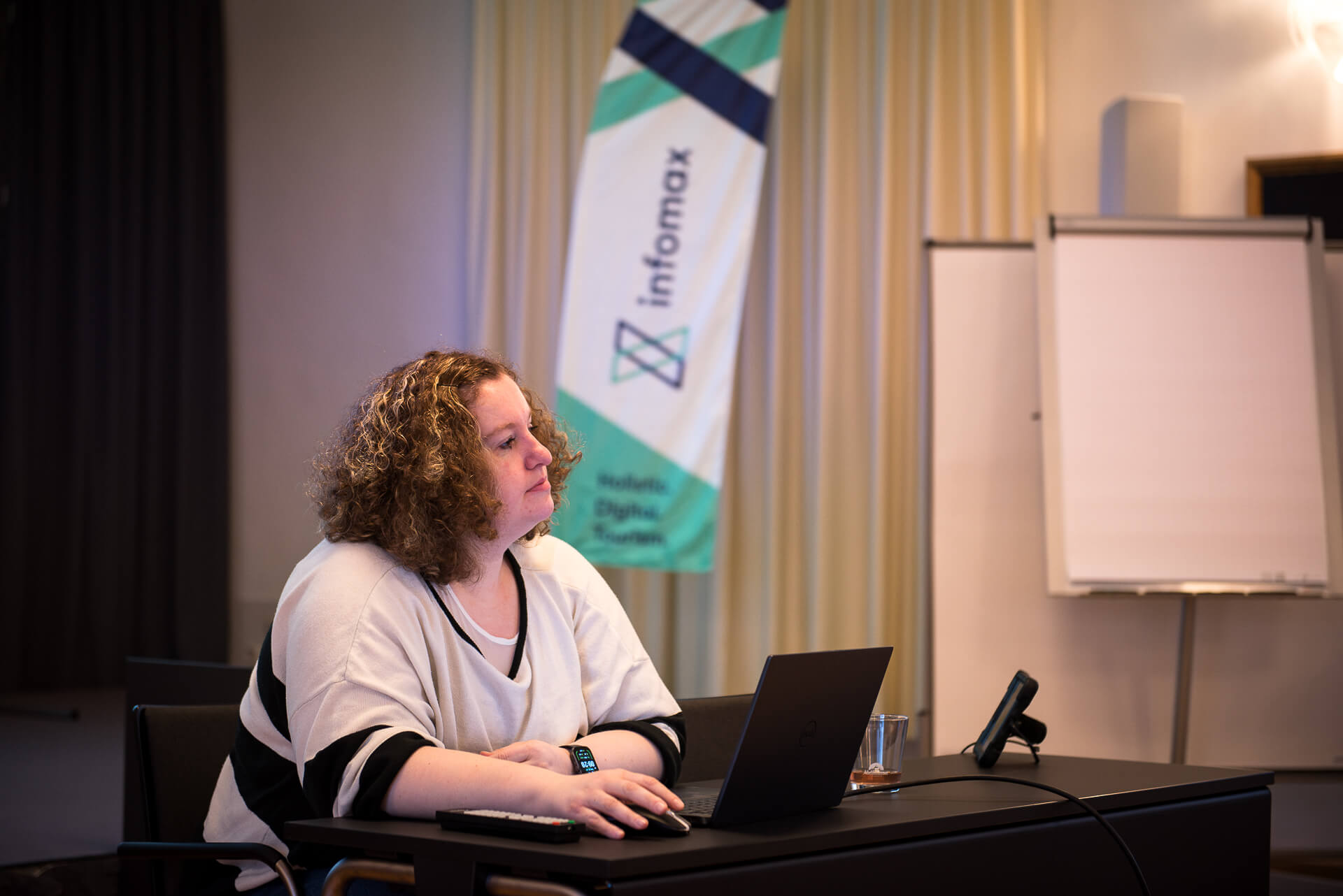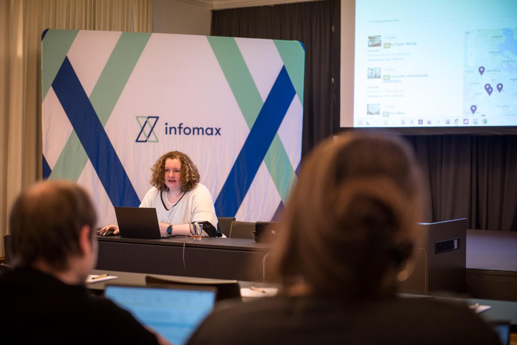 Janine Kather (Projektmanagerin) geht in einen offenen Austausch zum Thema „Barrierefreiheit – wie wir das Testing in unseren infomax-Alltag integrieren können“.