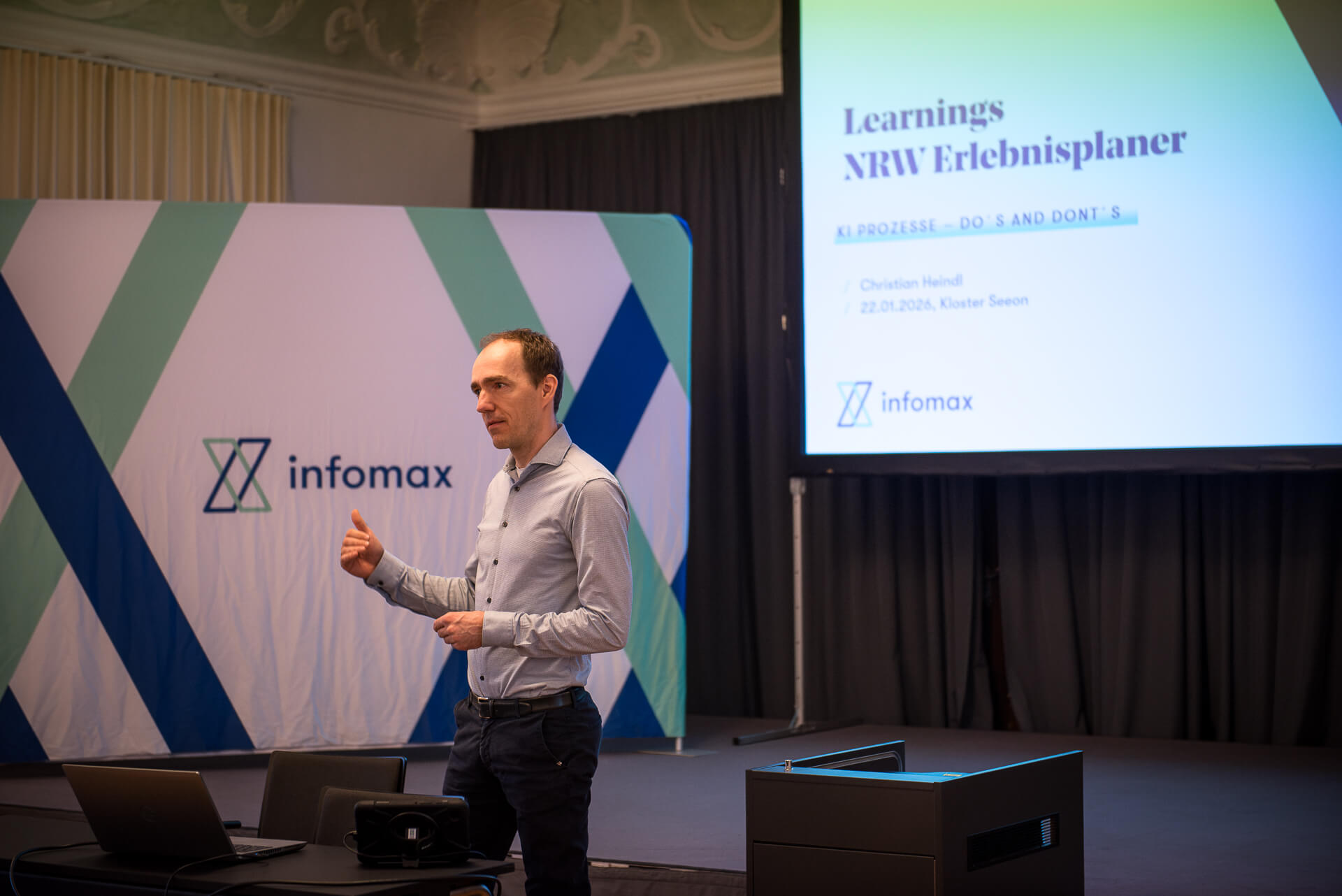 Wie viele Iterationen brauchten die Prompts für den NRWow! Erlebnisplaner? Das stellt Christian Heindl in seiner Session „Learnings NRW Erlebnisplaner: KI Prozesse – Do’s and Dont’s“ vor.